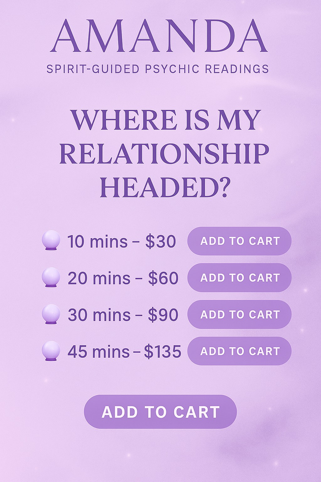 Whether you’re at a crossroads or simply need clarity on what lies ahead, Amanda provides intuitive guidance tailored to your energy and questions — with warmth, compassion, and truth.