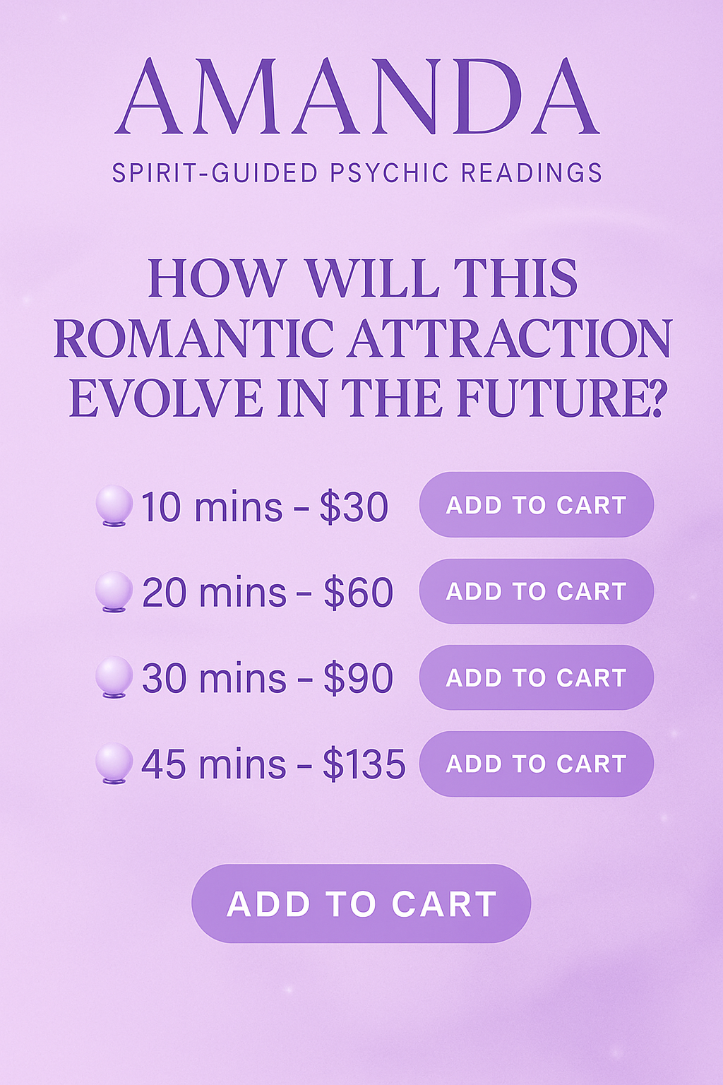 Whether your heart feels uncertain or your professional life feels stuck, Amanda’s combined love and career readings bring you into energetic alignment with your desires, purpose, and next steps.