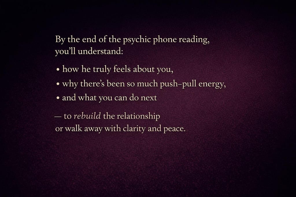 For over 25 years, I’ve provided private psychic phone readings focused on clarity, not guesswork. I help people understand what’s influencing their relationship, how the other person truly feels, and where things are actually headed.