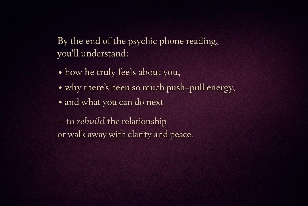 For over 25 years, I’ve provided private psychic phone readings focused on clarity, not guesswork. I help people understand what’s influencing their relationship, how the other person truly feels, and where things are actually headed.